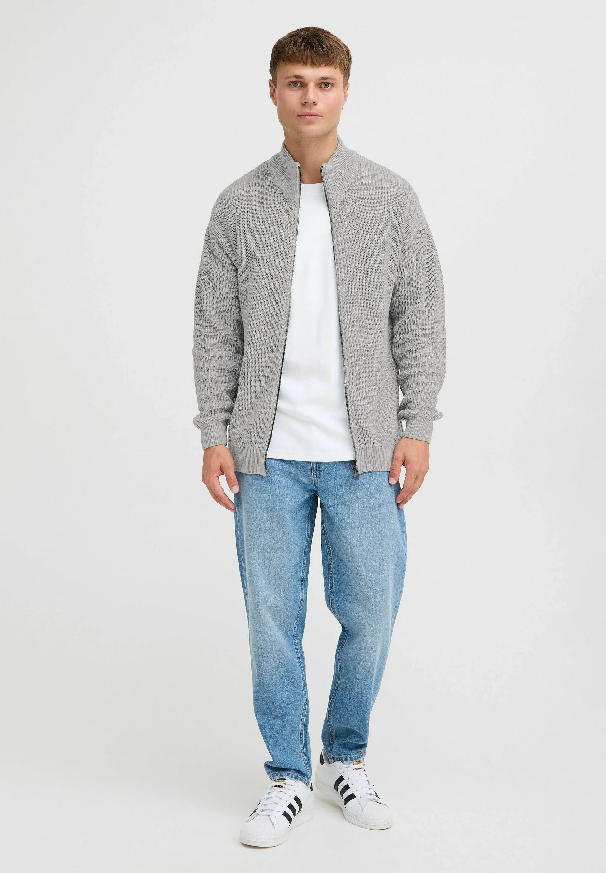 Men's High Neck Zip-Up Jumper - Grey