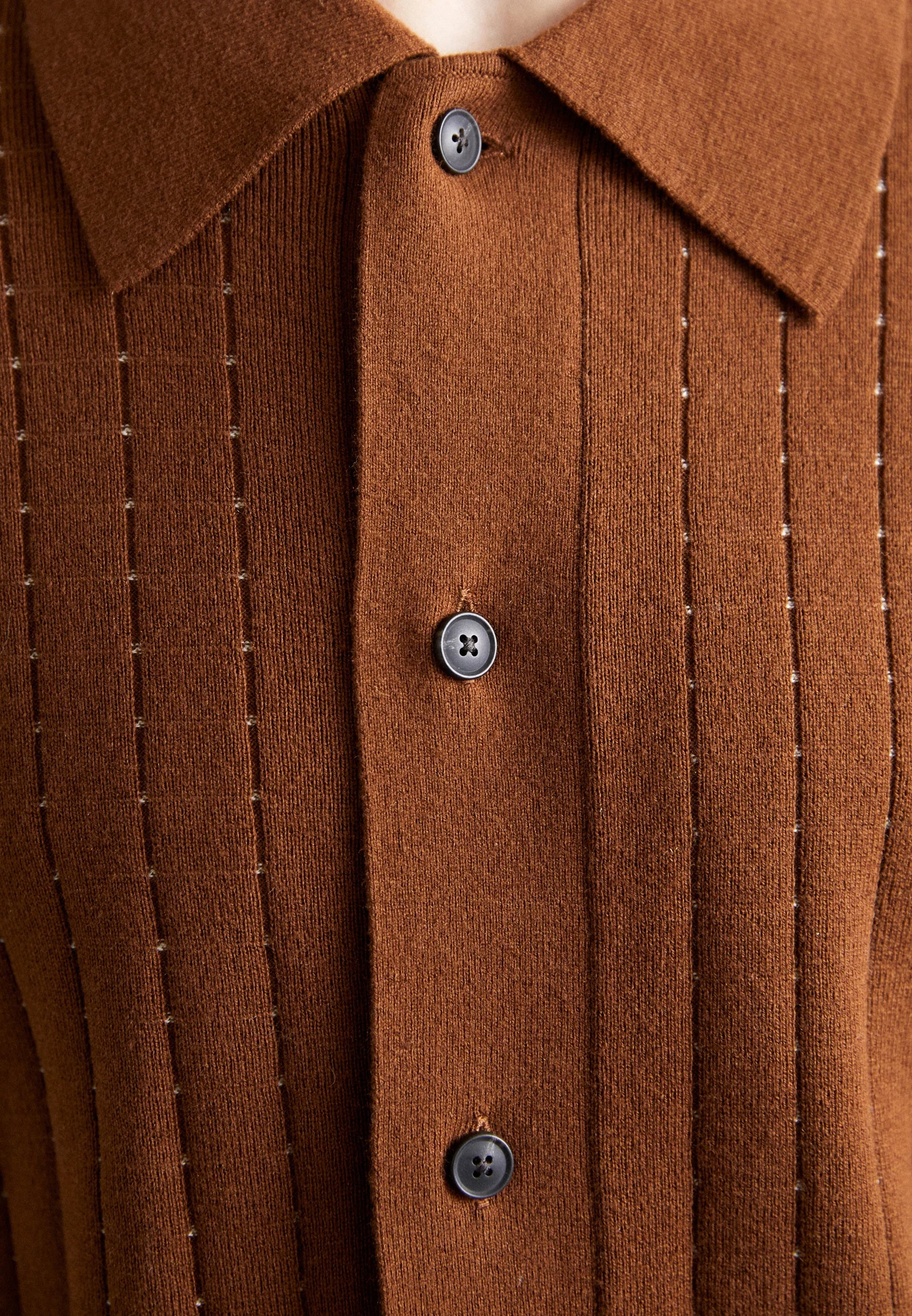 Ribbed Cotton Polo Shirt - Brown