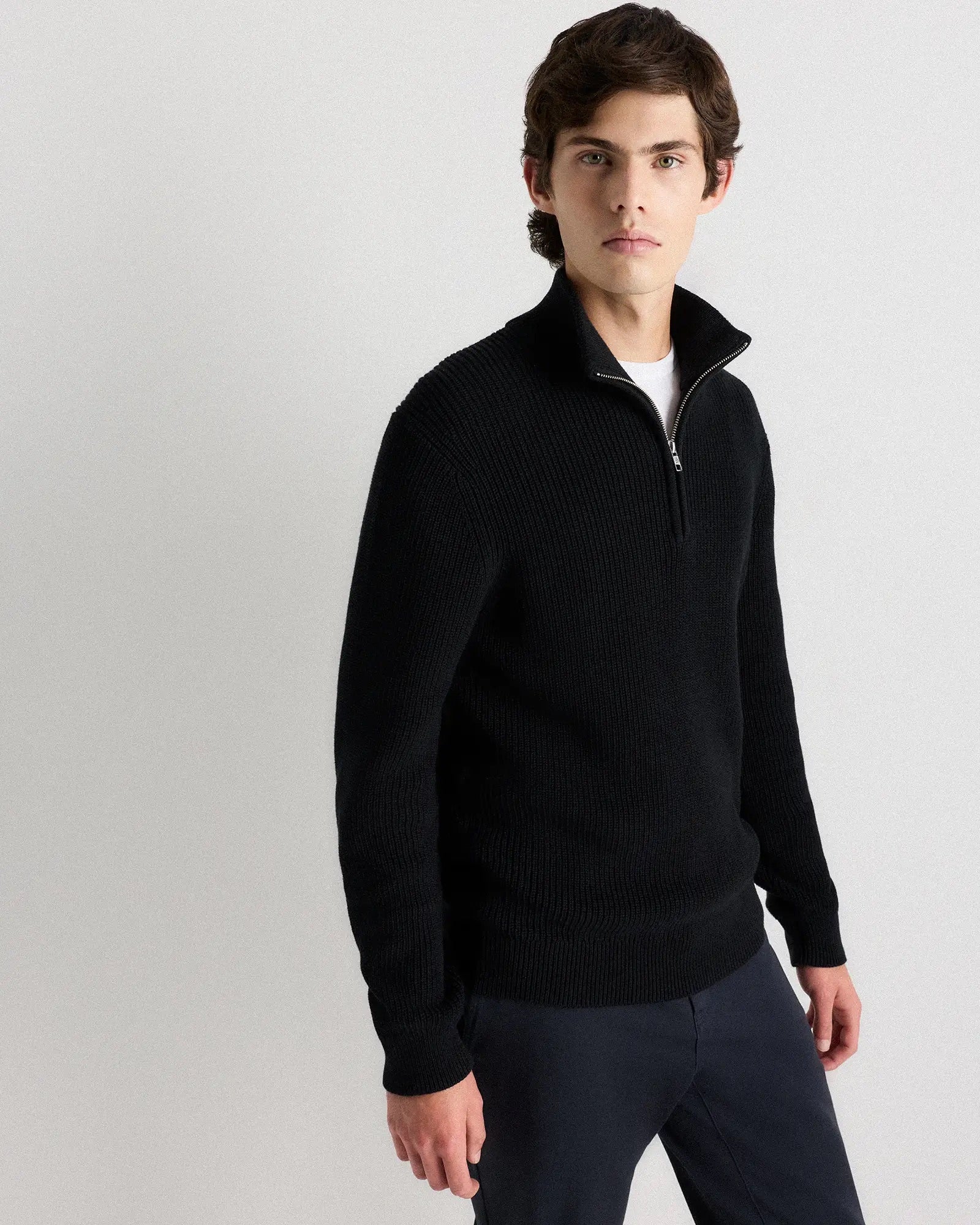 Ribbed Quarter Zip Jumper - Black